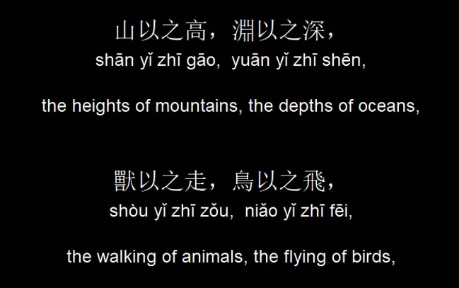 The end product of my translation work has been to produce "matching translation visual audiobooks". The word "matching" in that description refers to the format of alternating lines of Chinese and their translations into English. "Visual audiobook" refers to the format of speaking the lines in alternating Chinese and English while showing the same on screen. See the following figure: